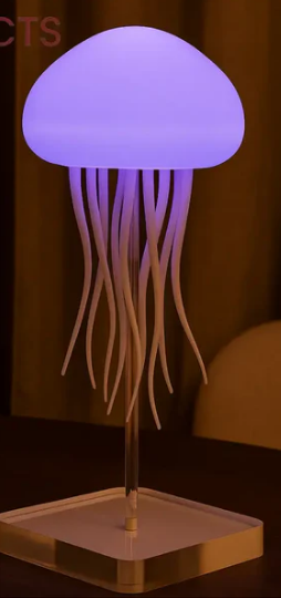 Aesthetic LED jellyfish night light with a soft, calming glow that creates a relaxing underwater ambiance for bedrooms and home décor.