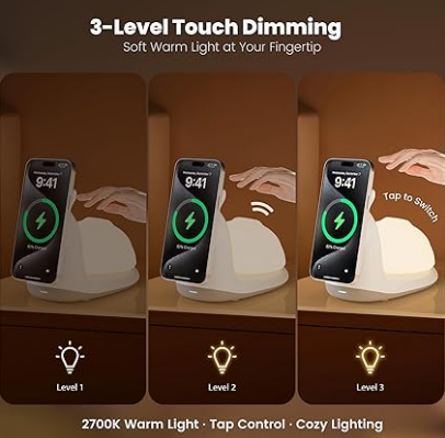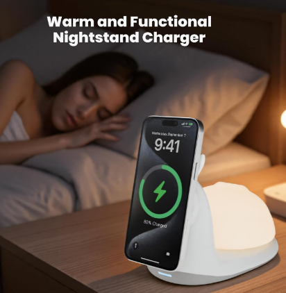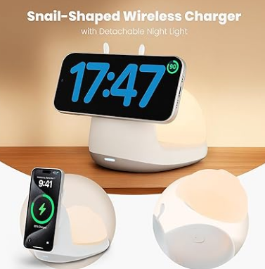 2-in-1 Detachable Design: Combining A detachable night light and a wireless magnetic charger dock, this mag-Safe Charging Stand for iPhone has the additional function of wireless charging compared to ordinary lamps. At the same price, you can experience the convenience of two products. It provides a sense of security while keeping you asleep, charges your phone at the same time, or serves as a portable phone stand for charging and video chatting.