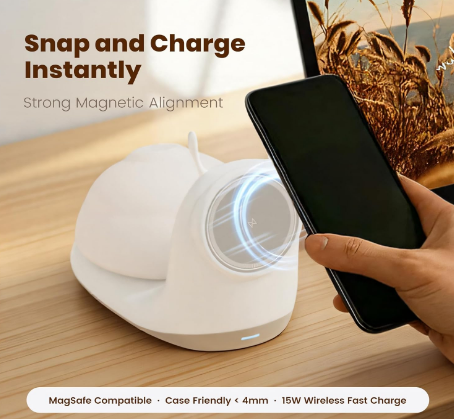 Magnetic Wireless Charger for iPhone: Perfectly compatible with Mag-Safe-enabled devices, this iphone charging stand mag-safe aligns automatically to your phone and provides stable wireless charging for iPhone 17 16e 16 15 14 13 12 Pro Max Air plus Mini